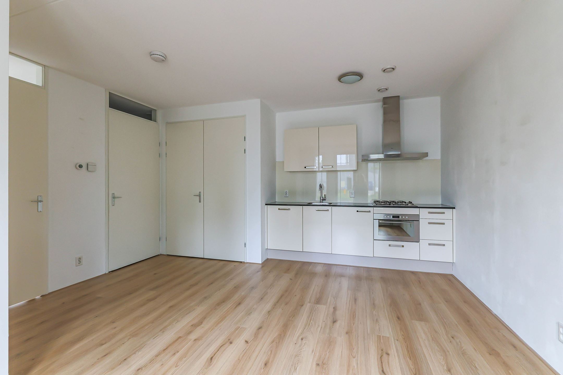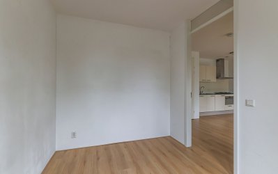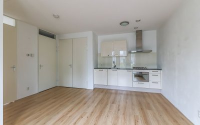 Het appartement bevindt zich op de begane grond. Via de voordeur bereik je de hal die toegang biedt tot de woonkamer met open keuken van circa 20m2. De keuken beschikt over diverse inbouwapparatuur, zoals een inbouw koelkast met vriesvak, combi oven, afzuigkap, kookplaat en vaatwasser. Verder beschikt de keuken over voldoende kastruimte. In de woonkamer is een berging waarin een wasmachine en droger beschikbaar zijn. Zowel de slaapkamer en badkamer zijn via de woonkamer te bereiken. De slaapkamer is circa 7,5m2 ruim en de badkamer 4m2. De badkamer bestaat uit een toilet, wasbak en een douche.