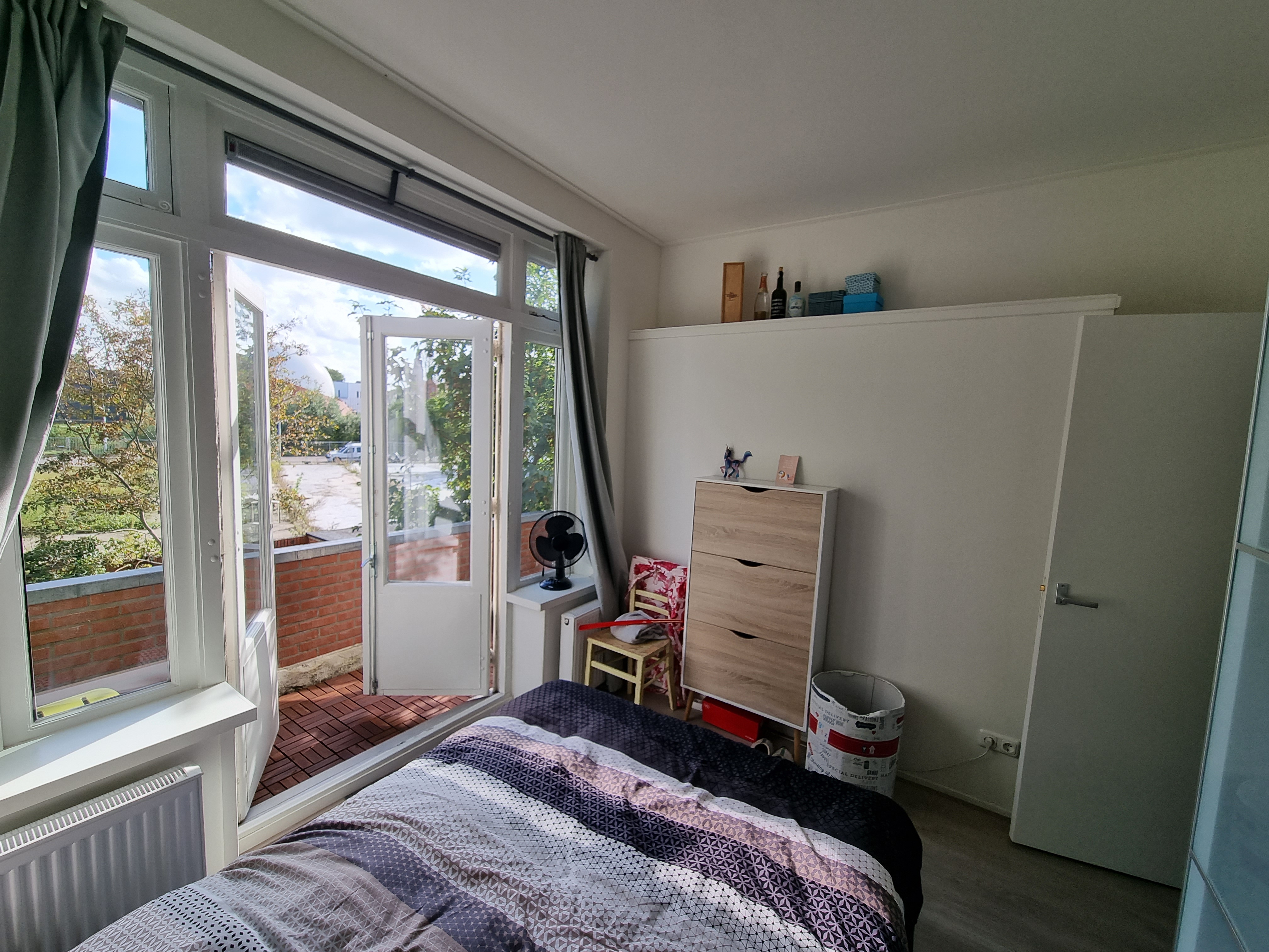 De badkamer is circa 3 m² en is voorzien van een inloopdouche, wastafel en een designradiator. De slaapkamer is maar liefst 10 m² en hier bevindt zich ook het balkon van circa 6 m², gelegen op het zuiden met een erg fijn uitzicht.