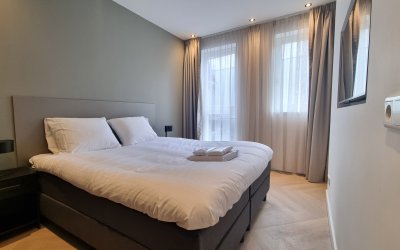Het appartement is volledig gemeubileerd en voorzien van luxe faciliteiten zoals een wijnkoeler, Quooker-kraan, flatscreen-tv’s en een video-intercomsysteem.