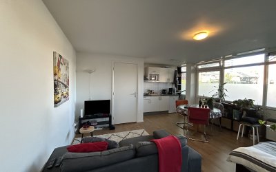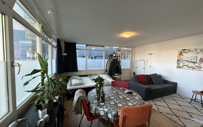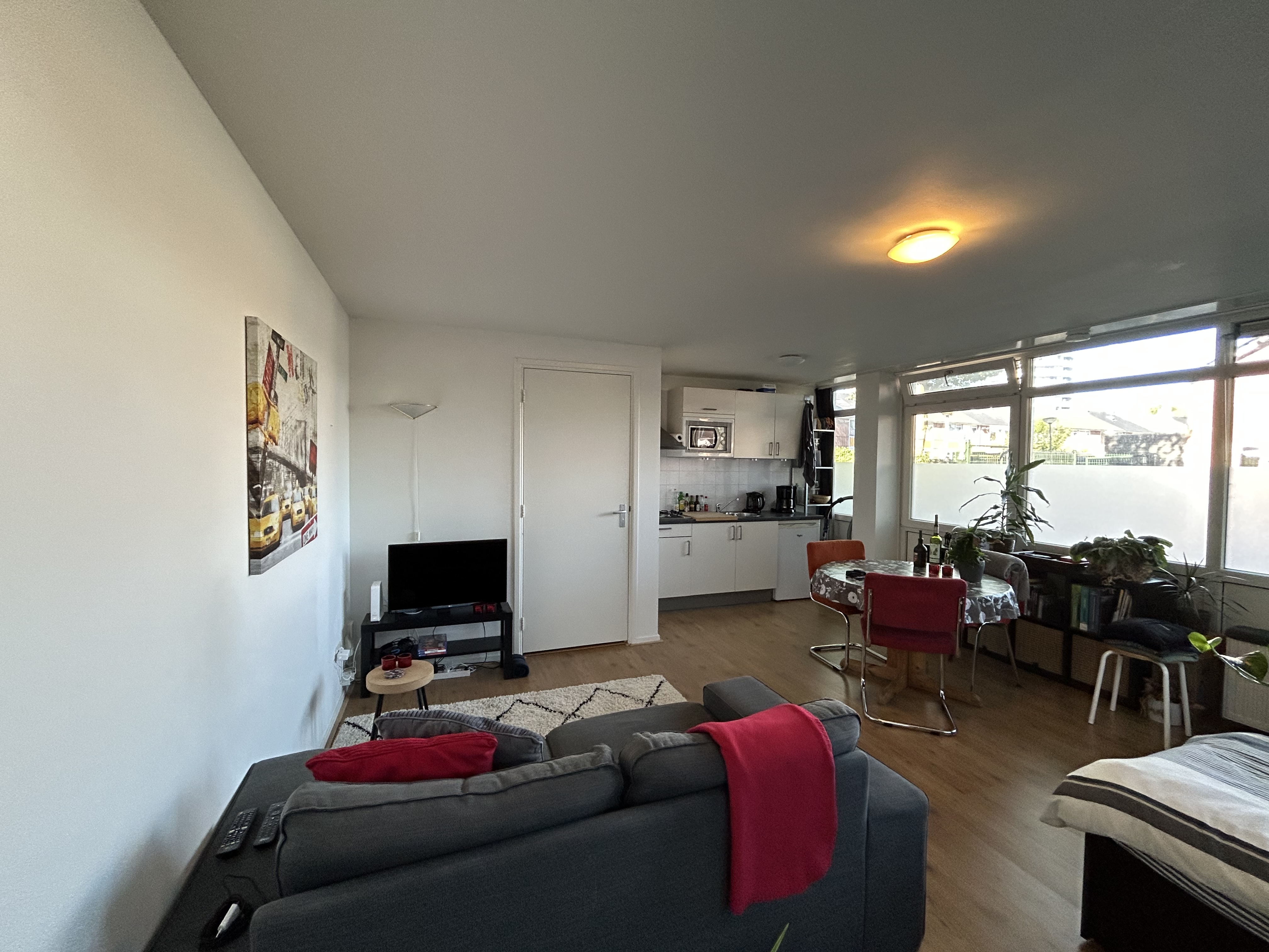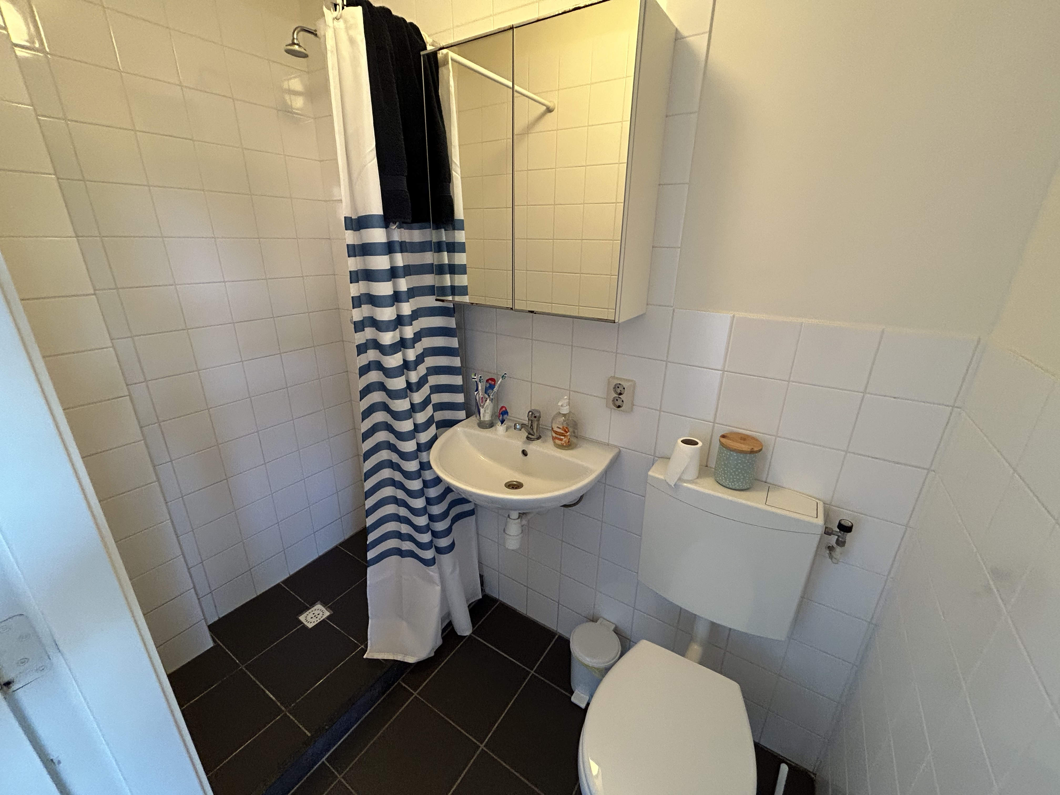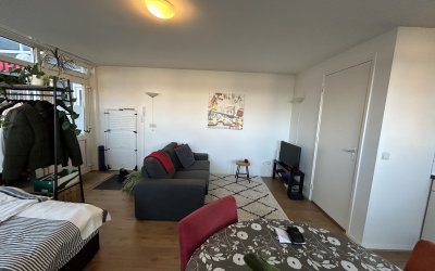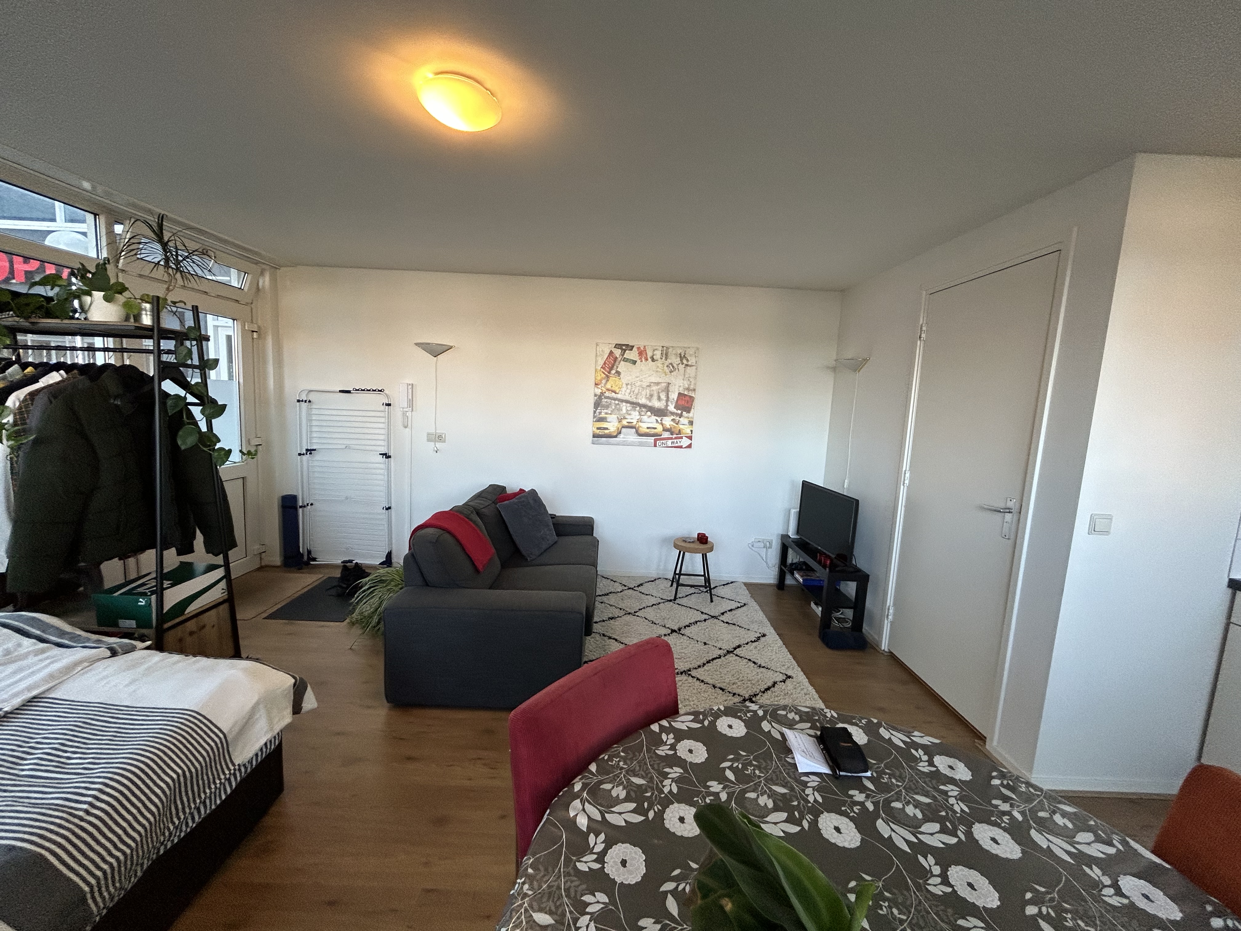 Gezamenlijke entree met een lift. Bij binnenkomst tref je de woonkamer met open keuken welke beschikt over diverse faciliteiten zoals een 4-pits kookplaat en koelkast. De badkamer is voorzien van een toilet, douche en wasbak. Verder is de gehele studio voorzien van een nette laminaatvloer, beschikt het over verduisterende gordijnen welke niet vervangen mogen worden.