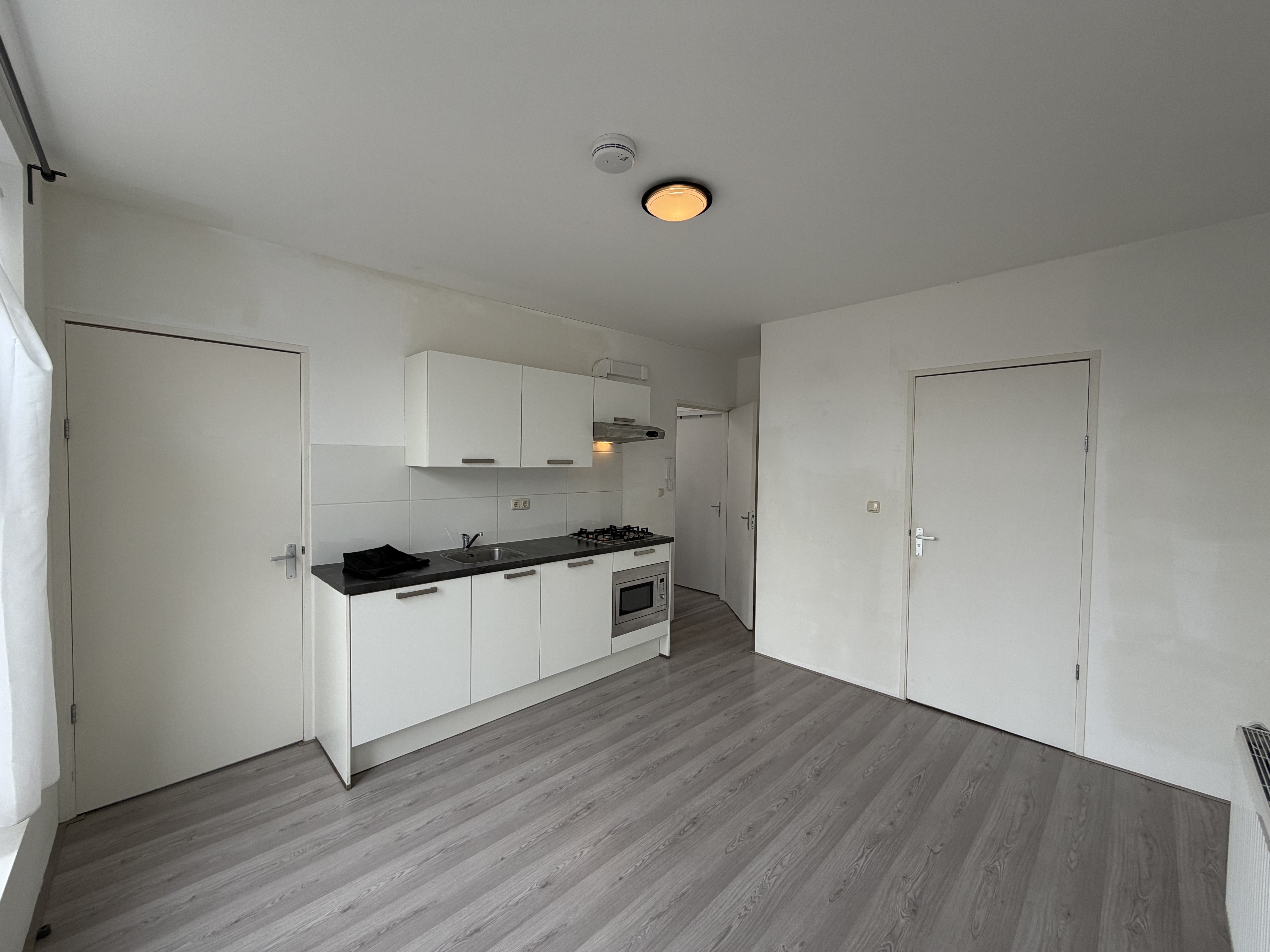 Gezamenlijke entree. Vanuit de eigen voordeur wordt de woonkamer met open keuken betreden. Vanuit de woonkamer is er toegang tot de slaapkamer en de badkamer. De keuken is voorzien van o.a. inbouw vaatwasser, inbouw combi-oven, koelkast met vriesvakje en 4-pits gaskookplaat. In de badkamer vind je een aparte douche, wasbak en zwevend toilet.