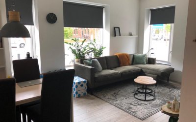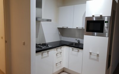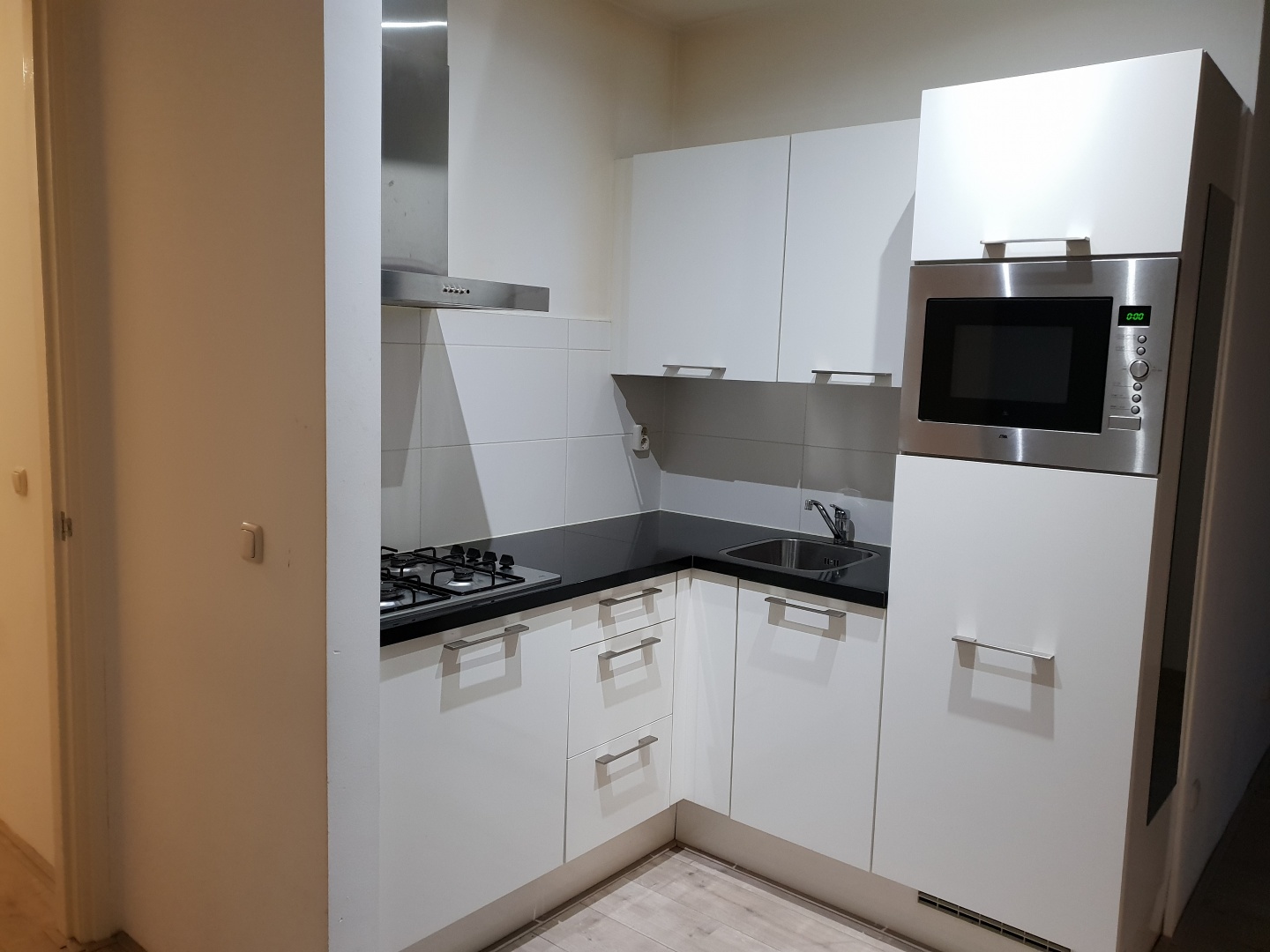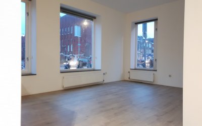 Via de hal kom je in de woonkamer met open keuken van ca. 29 m2 terecht. De luxe keuken is voorzien van inbouw vaatwasmachine, combi oven/magnetron, kookplaat en koelkast. De prachtig afgewerkte badkamer is voorzien van aparte douche, wasbak incl. meubel en designradiator. Het toilet is separaat. De afsluitbare slaapkamer is ca. 9 m2 ruim.