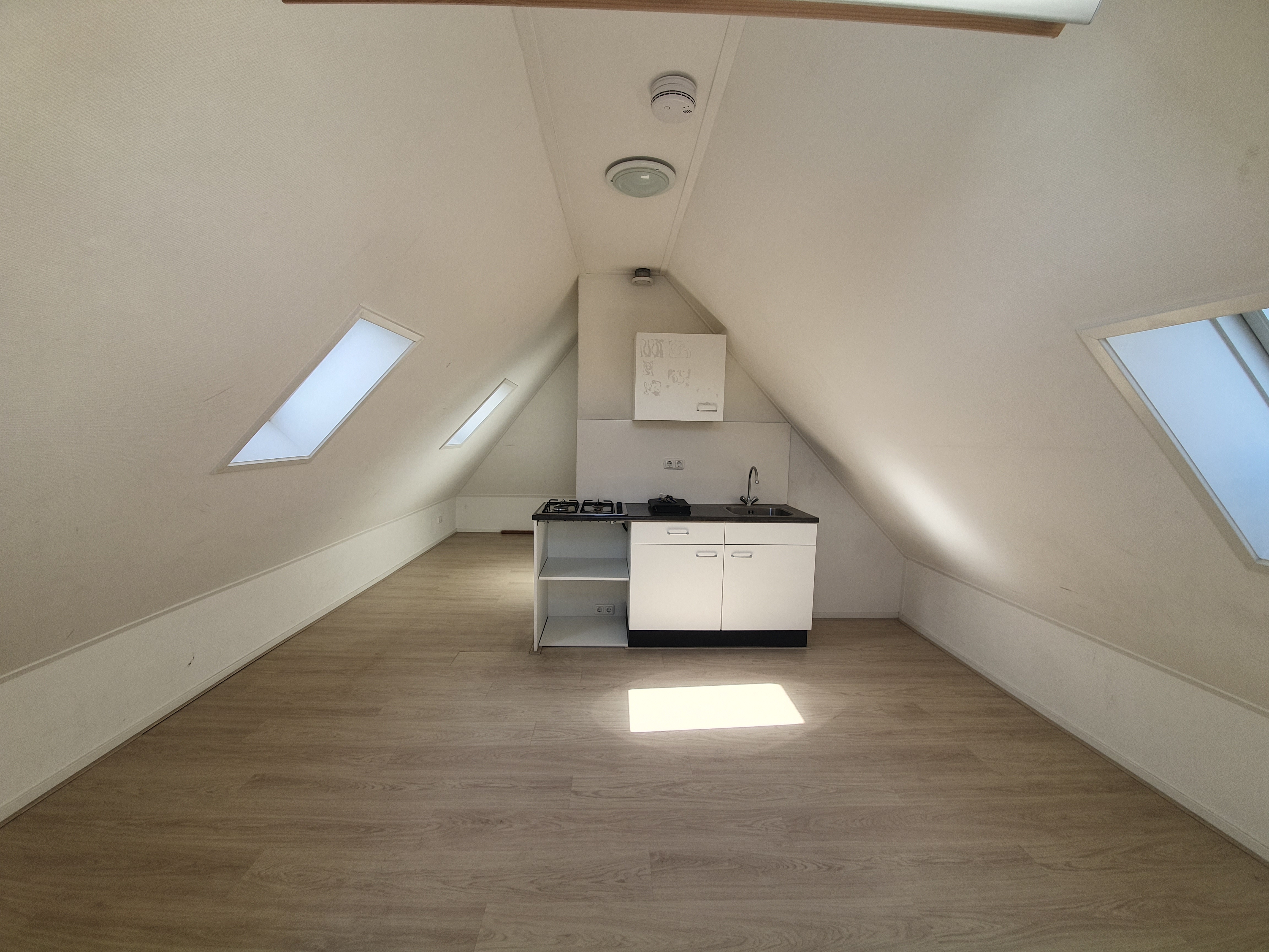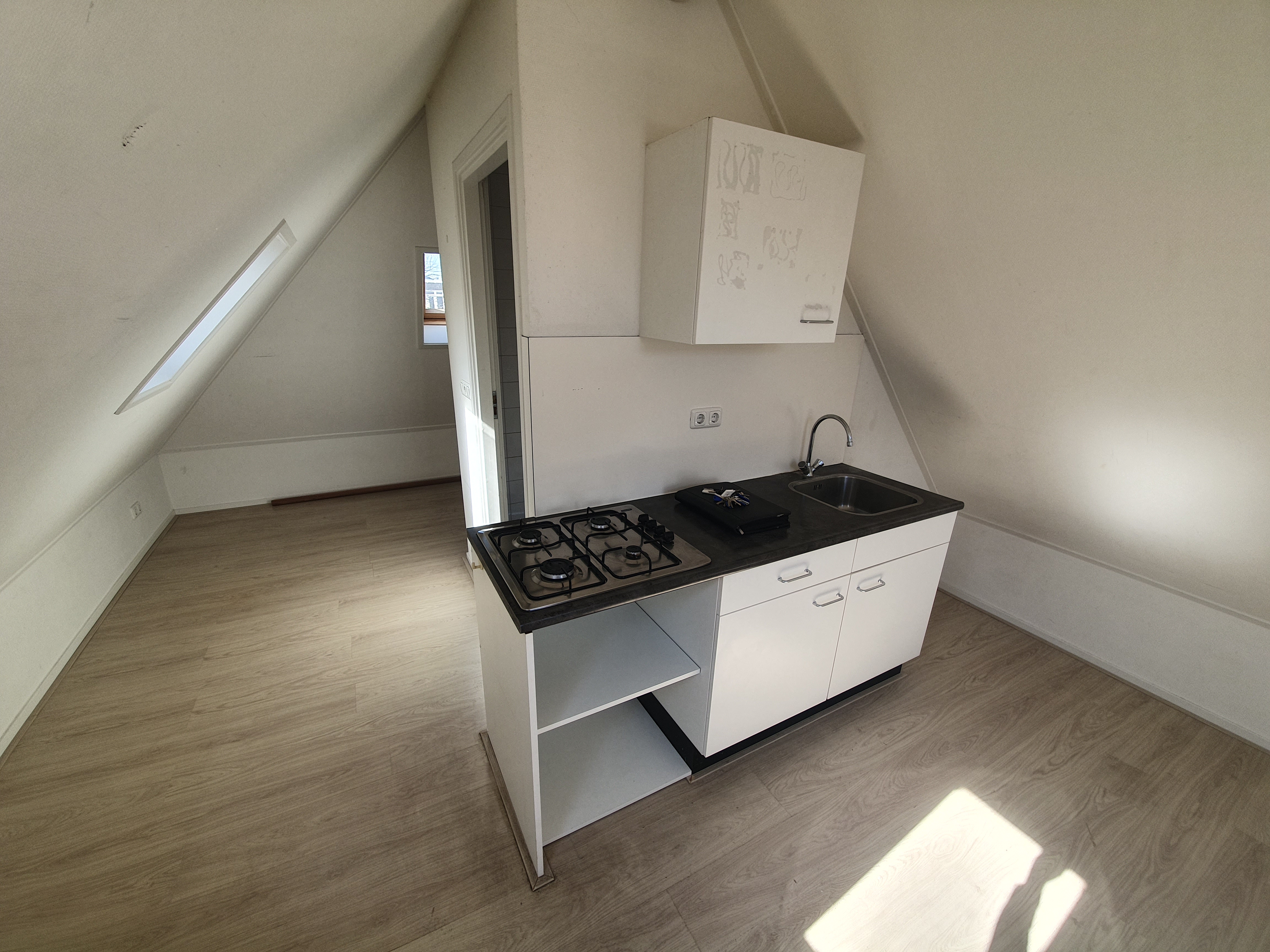 Deze zelfstandige studio van ca. 25 m² ligt op de tweede verdieping aan de voorzijde van het gebouw. De woon-slaapkamer met open keuken beslaat ongeveer 20 m². De keuken is voorzien van een afzuigkap en gaskookplaat. De badkamer van ca. 3 m² is uitgerust met een zwevend toilet, wastafel en inloopdouche.