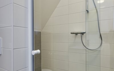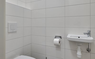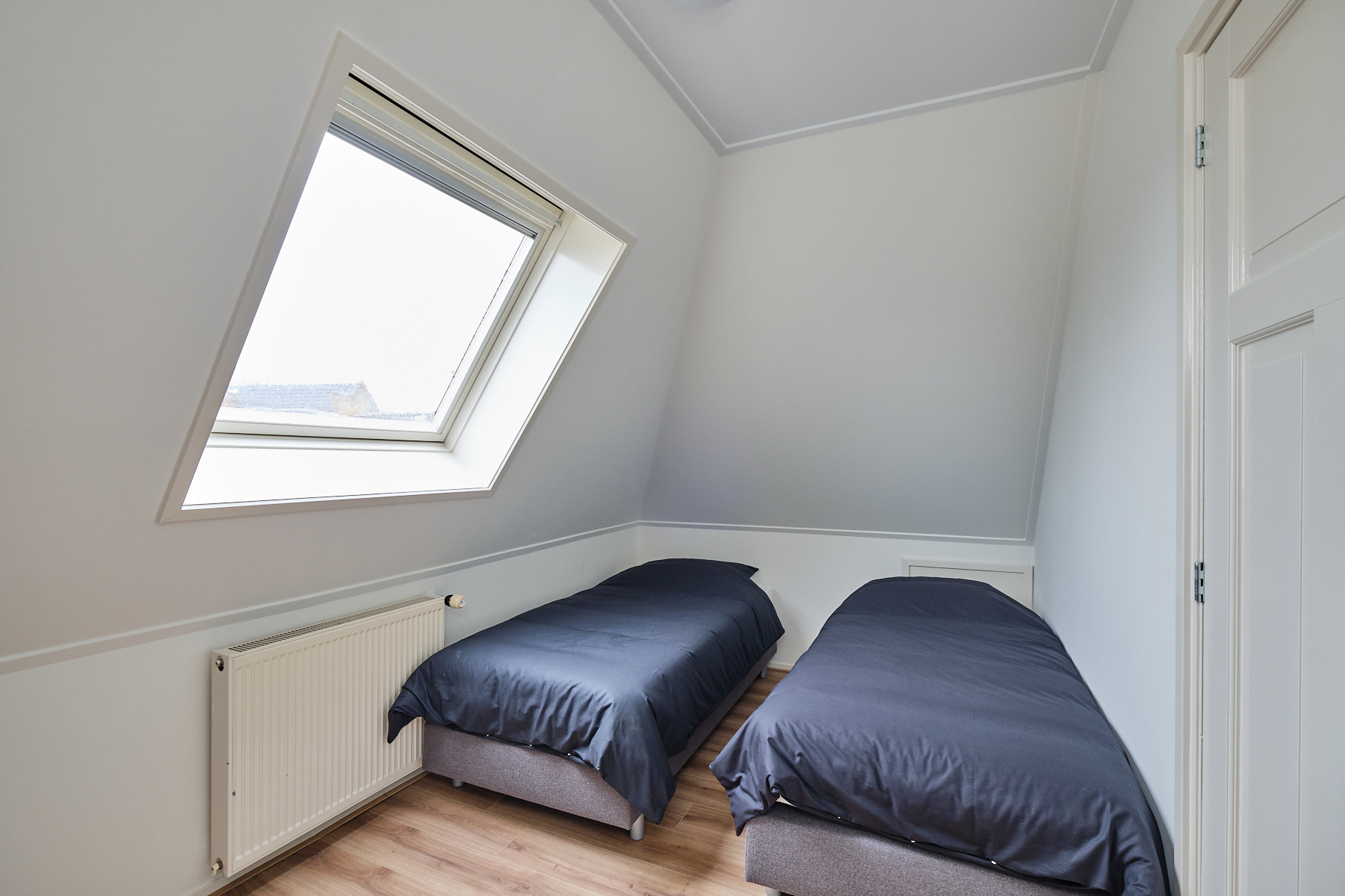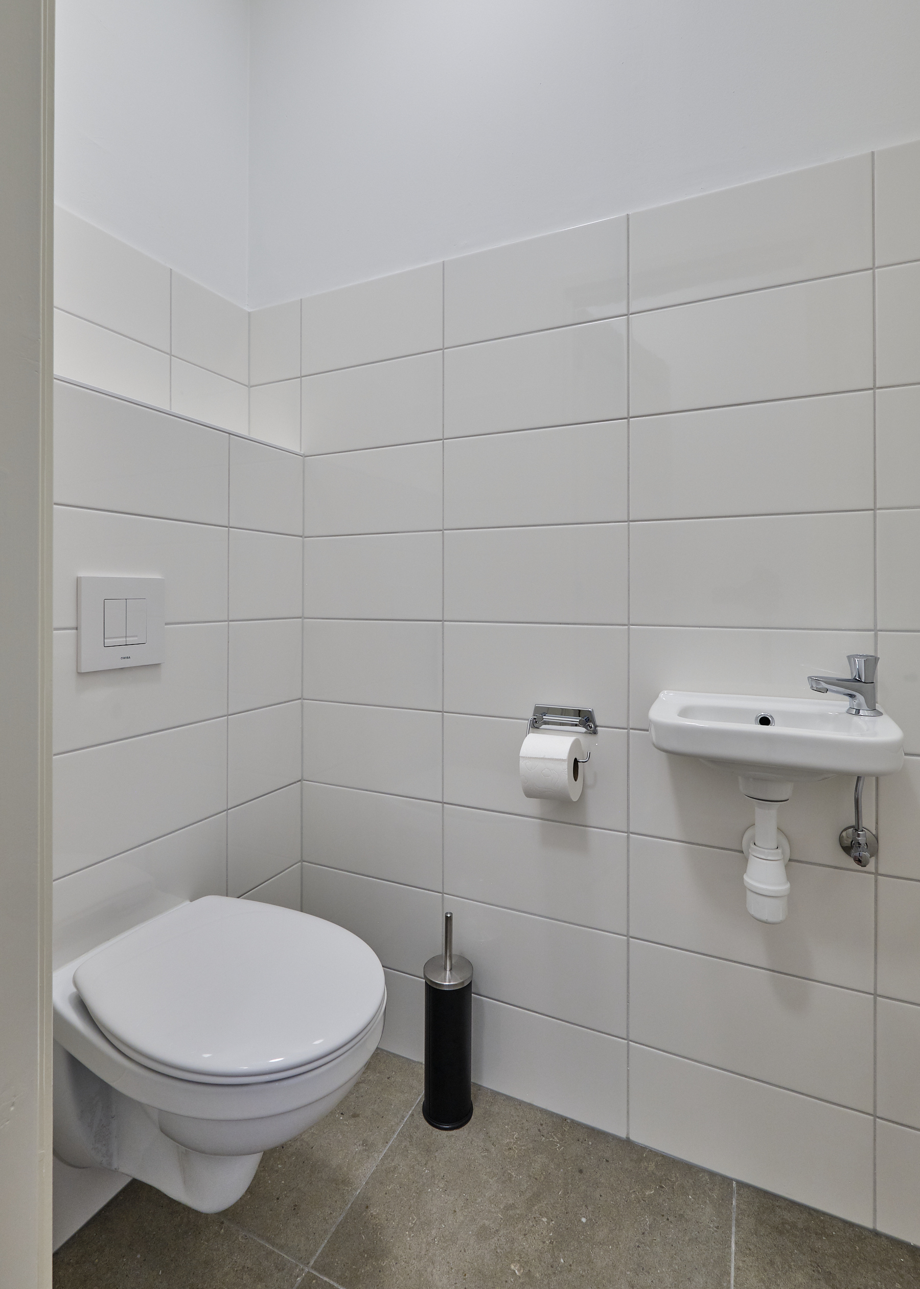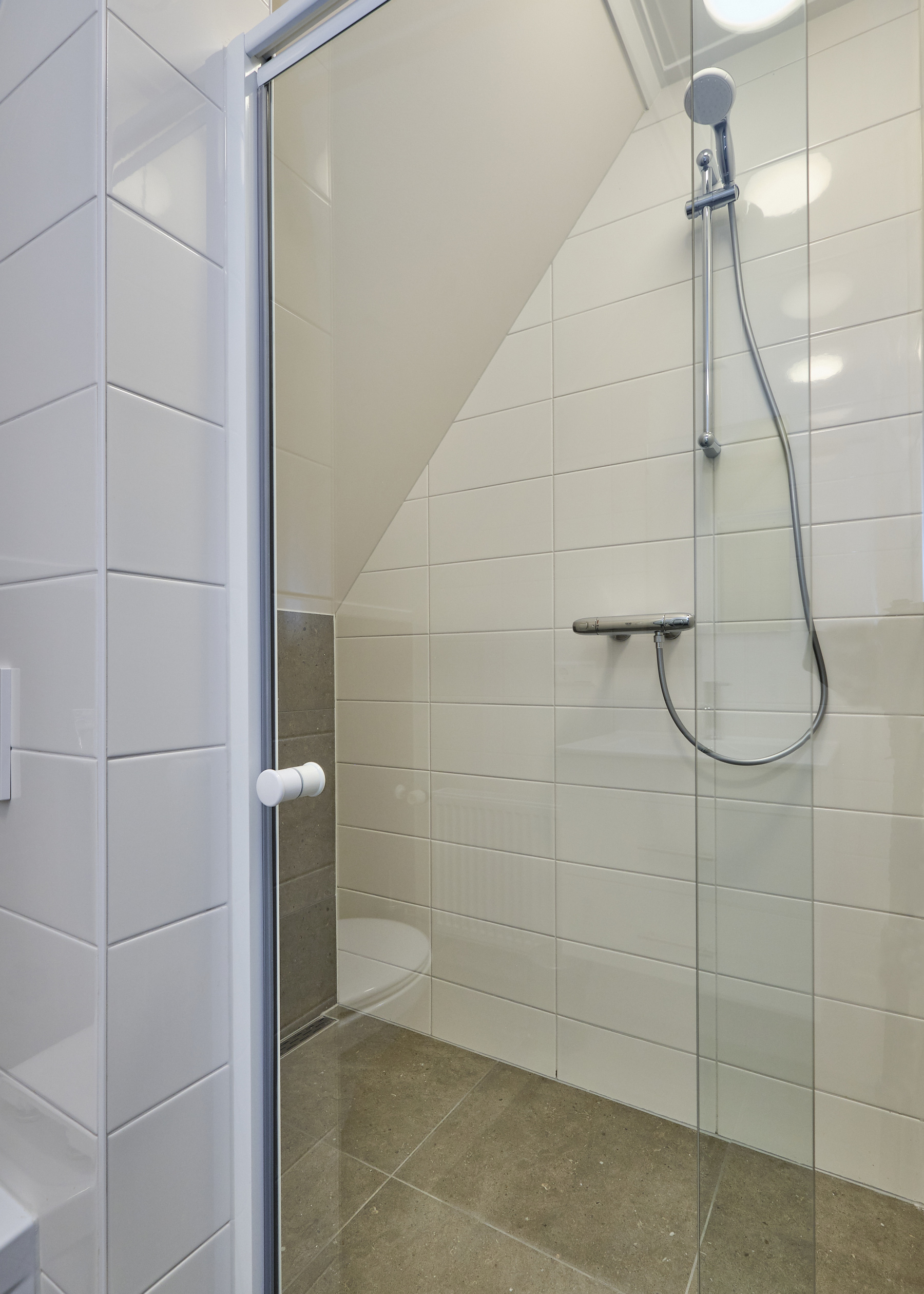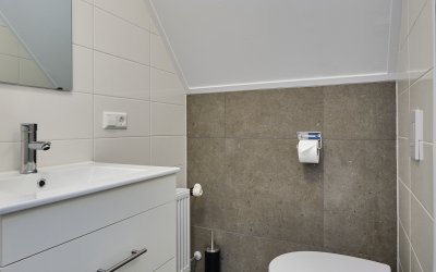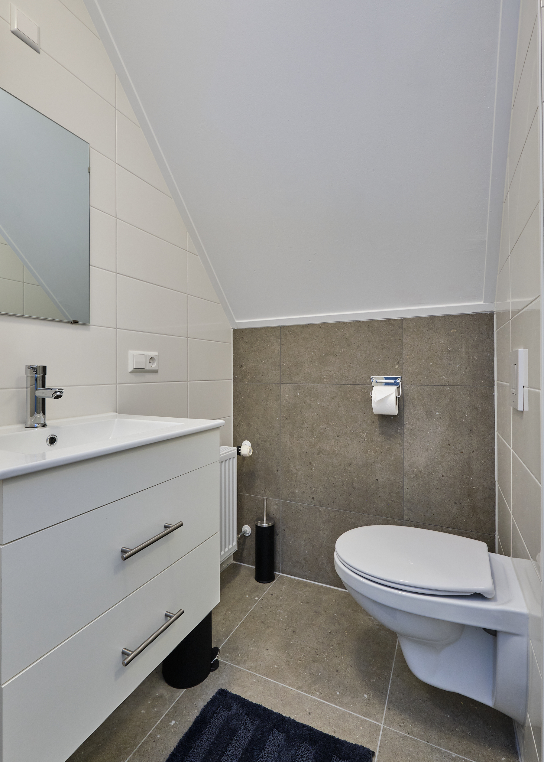 Het appartement beschikt over twee slaapkamers van circa 19 m² en 8 m². De badkamer (4 m²) heeft, naast de inloopdouche, een wastafel en een zwevend toilet. Daarnaast is er ook nog een apart toilet, voorzien van een hangend toilet en een wastafel.