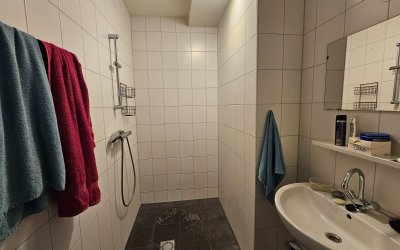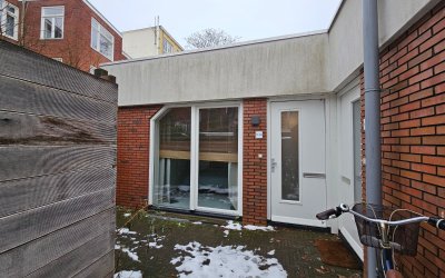 Vanuit de slaapkamer van circa 10 m² heb je toegang tot de badkamer, welke is voorzien van een douche en wastafel. Tot slot heb je vanuit de woonkamer toegang tot de gedeelde tuin.