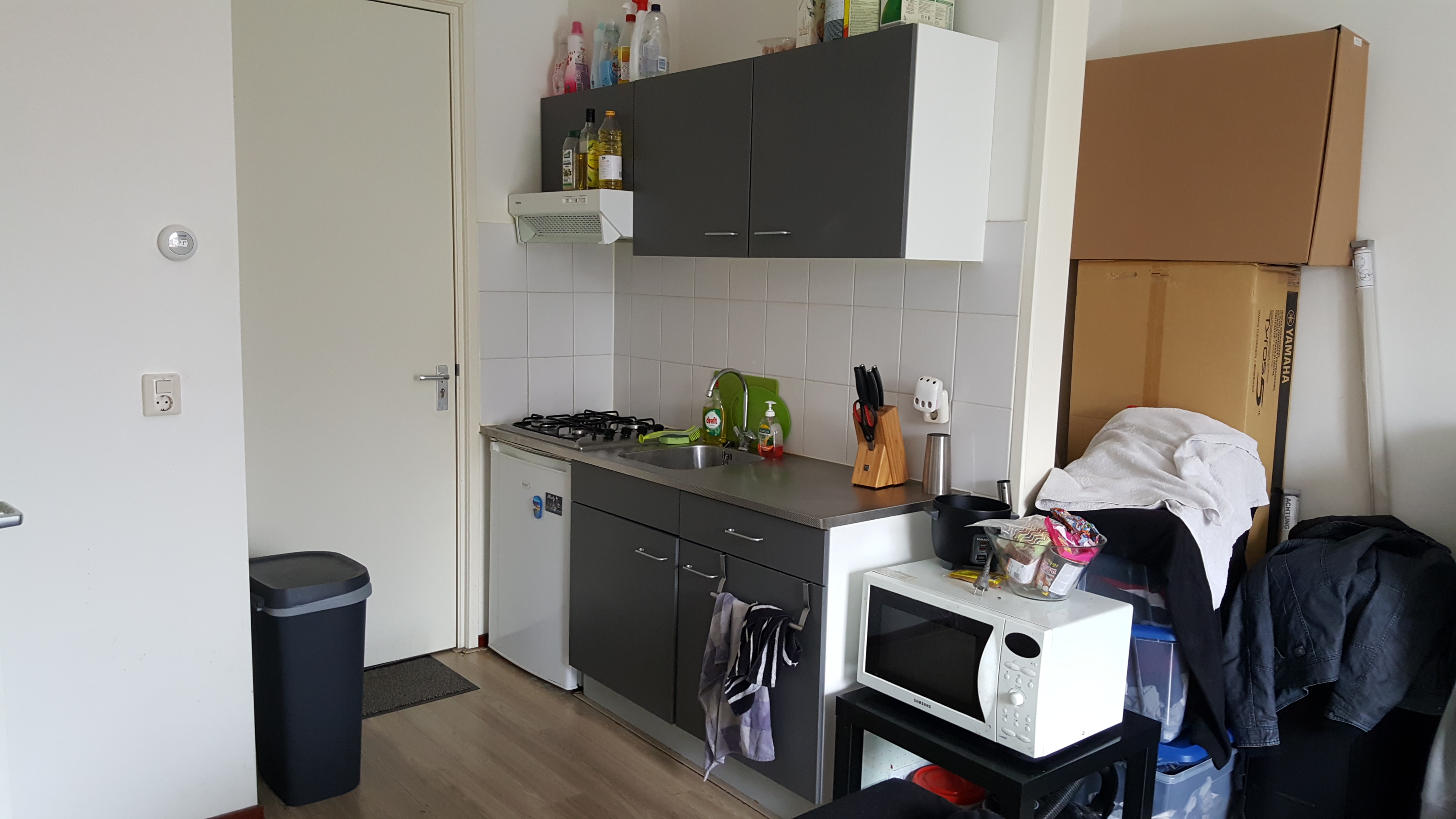Bij binnenkomst in het appartement kom je in de ruime woon/slaapkamer met open keuken van maar liefst 25 m². De keuken is voorzien van diverse inbouwapparatuur, zoals een gaskookplaat en afzuigkap. De badkamer van 3m2 is voorzien van een inloopdouche, een zwevend toilet en een wastafel.