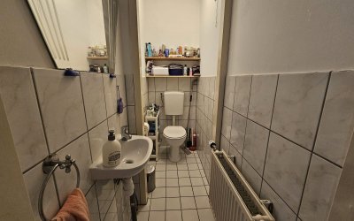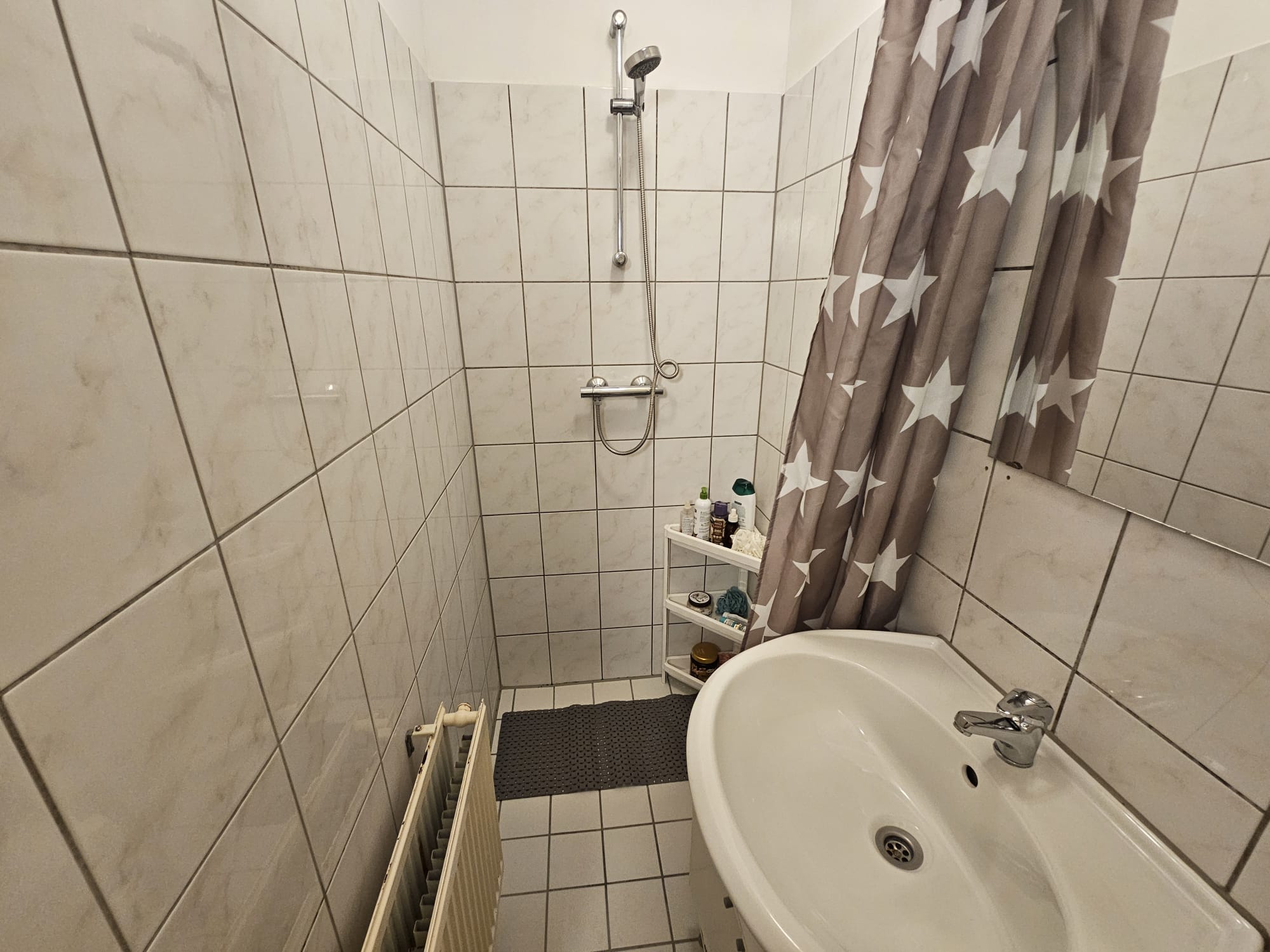 The studio is situated on the first floor of a characteristic building. Upon entering the building, you take the stairs up to reach the studio at the rear of the property. The living-bedroom offers a spacious area of approximately 20 m2. The kitchen, about 6 m2 in size, is equipped with built-in appliances including a refrigerator, dishwasher, gas stove, and extractor hood. The bathroom covers an area of approximately 2 m2 and includes heating. The toilet is separate.