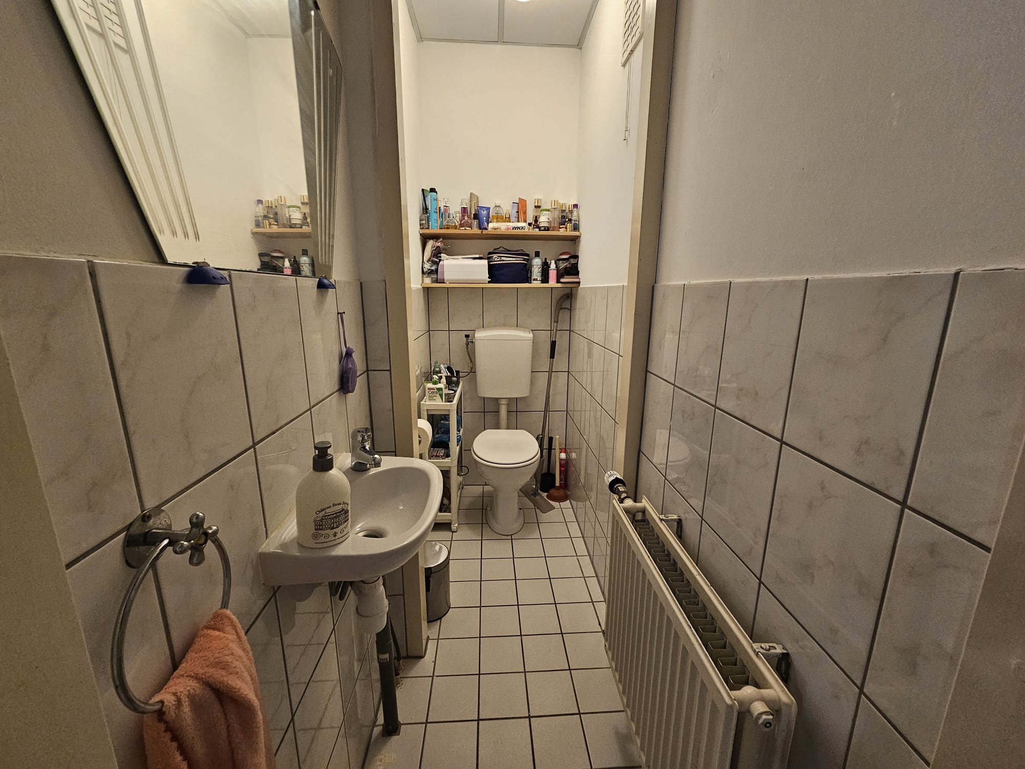 De studio is gelegen op de eerste verdieping van een karakteristiek pand. Bij binnenkomst in het gebouw neem je de trap omhoog, waarna je bij de studio aan de achterzijde van het pand komt. De woon-slaapkamer biedt een royale ruimte van ongeveer 20 m2. De keuken van ongeveer 6 m2 is uitgerust met ingebouwde apparatuur, waaronder een koelkast, vaatwasser, gaskookplaat en afzuigkap. De badkamer beslaat een oppervlakte van ongeveer 2 m2 en is o.a. voorzien van verwarming. Het toilet is separaat.